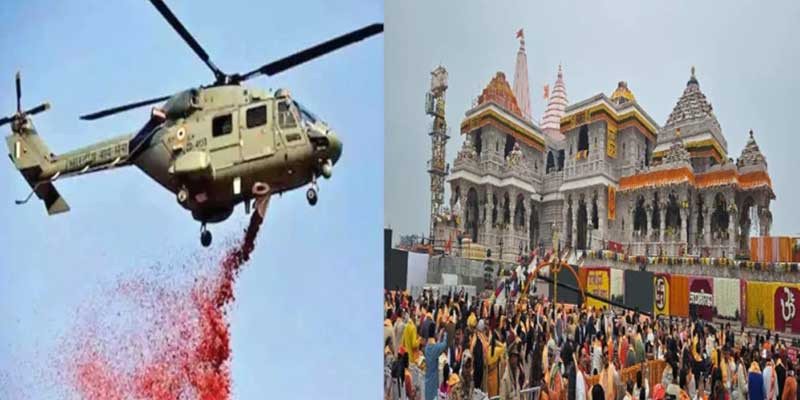 भारतीय वायुसेना के हेलिकॉप्टर ने अयोध्या के राममंदिर पर फूलों की वर्षा की