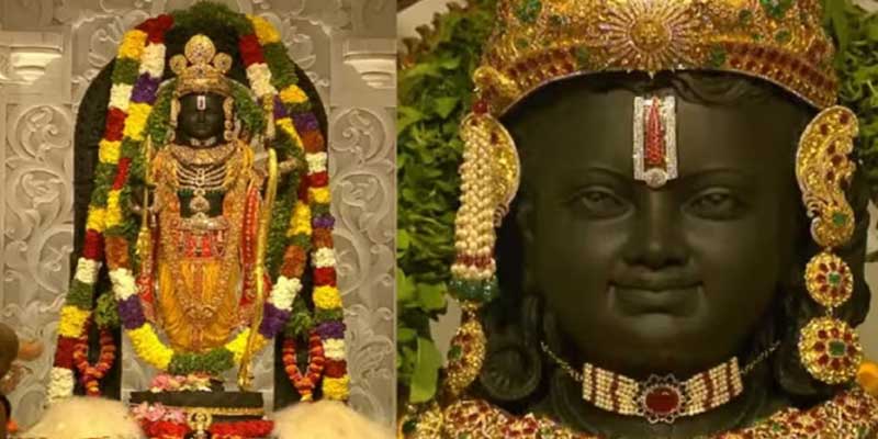मैसूर के मूर्तिकार अरुण योगीराज के कुशल हाथों से निर्मित, 51 इंच लंबी मूर्ति, कमल पर खड़े पांच वर्षीय भगवान राम की छवि को दर्शाती है, सभी को पत्थर के एक ही खंड से सावधानीपूर्वक उकेरा गया है।